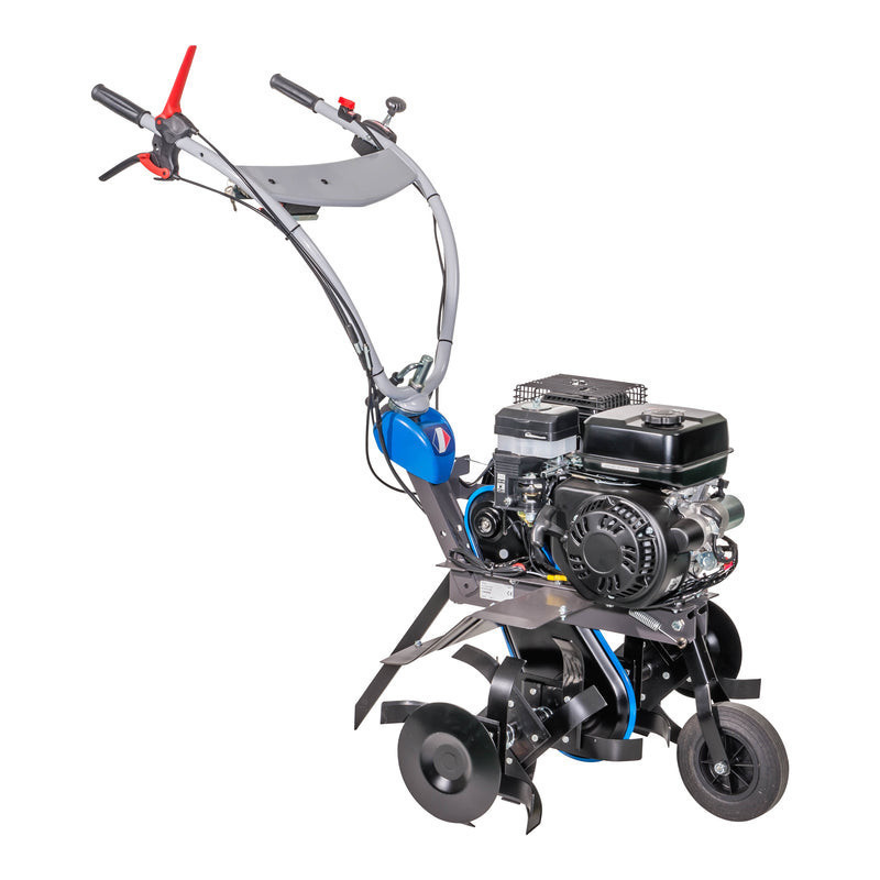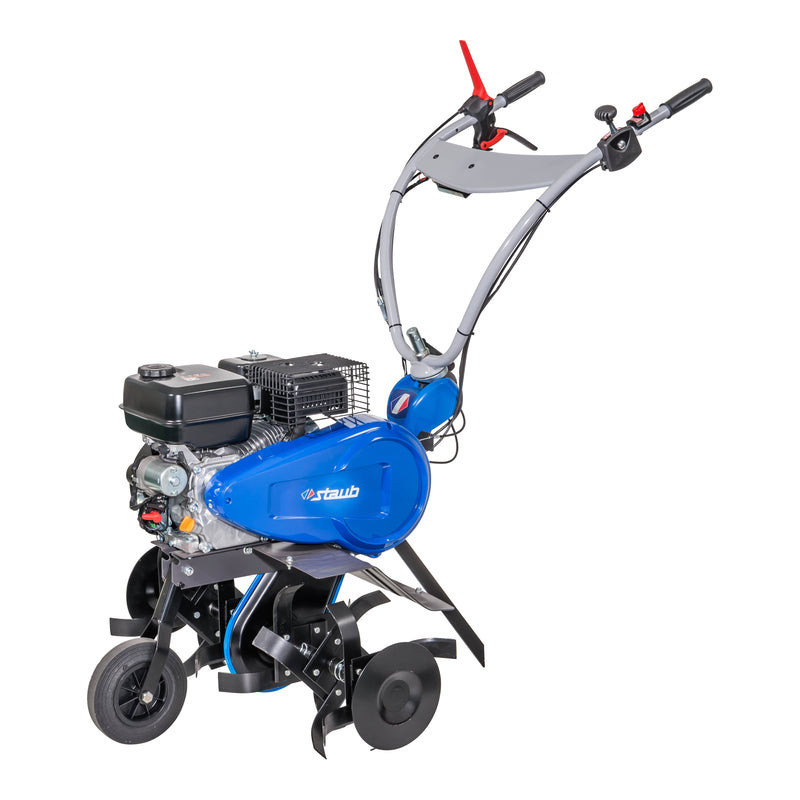 La motobineuse a démarrage électrique ST 2966 DE est conçue pour travailler efficacement des surfaces jusqu'à 1000 m². Grâce à son démarreur électrique, elle démarre facilement. Sa roue avant escamotable facilite le transport et les disques protège-plantes préservent vos cultures. Elle atteint jusqu'à 32 cm de profondeur, propose plusieurs largeurs de travail (40, 60, 80 cm) et dispose d’un guidon réglable en hauteur et en déport pour un confort optimal.