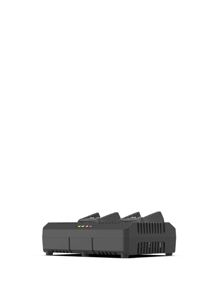 Le chargeur double KAC04 permet de recharger deux batteries KrossPack en même temps, optimisant ainsi votre temps de travail. Il charge une batterie 2,0 Ah en seulement 30 minutes. Doté d’un système de refroidissement intégré et d’indicateurs LED, il offre une alimentation rapide, sûre et fiable.